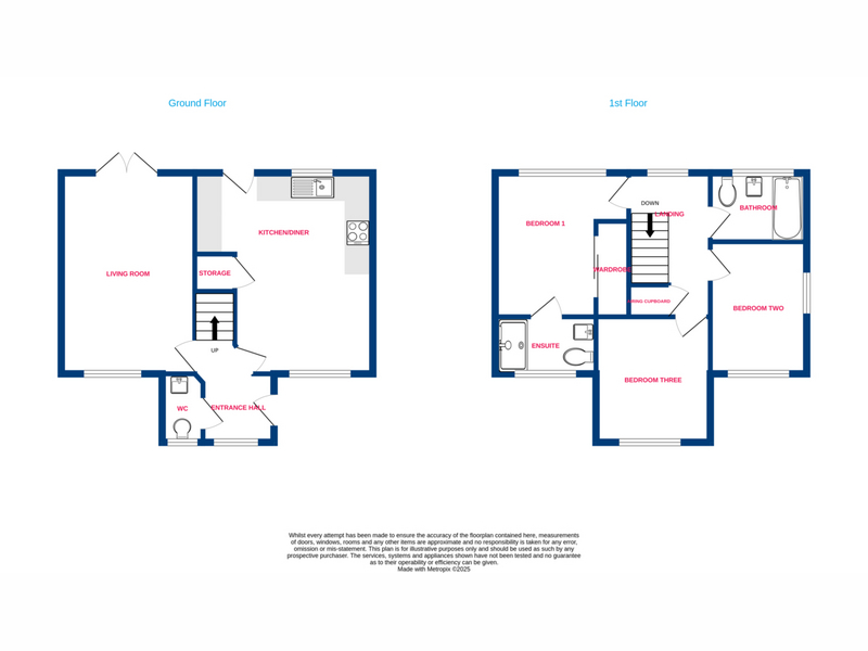 Bedroom Two 8'9 x 8'9, Bedroom Three 9'7 x 7'7