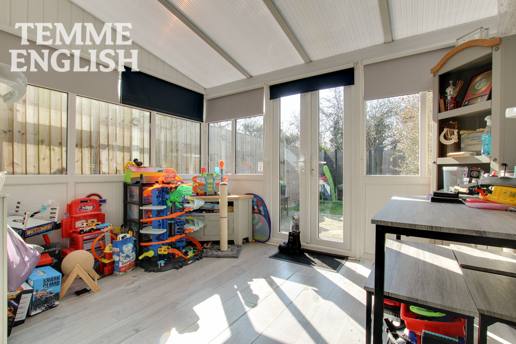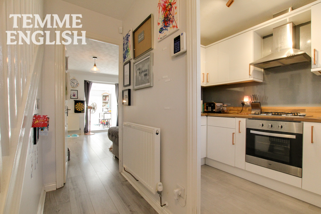 Temme English are delighted to present to the market this fantastic TWO bedroom end of terrace house benefiting from its own driveway & garage. Pleasantly positioned within a cul de sac location of Shotgate the property is presented internally to excellent standard. Stylish throughout the favourable layout consists of entrance hall, newly fitted kitchen with quality fitted appliances, lounge with double doors opening onto the conservatory currently acting as a play room but could be used as a dining room. The rear garden has rear access and enjoys a westerly facing rear garden. Only by an internally inspection can the size and standard be fully appreciated. NO ONWARD CHAIN!