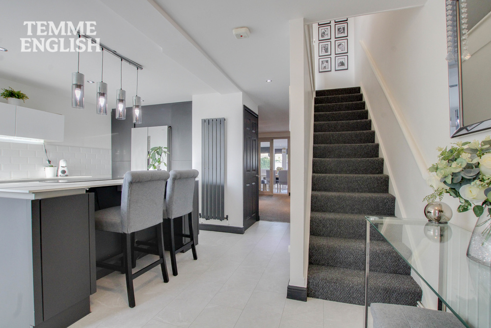 The impressive ground floor accommodation begins with a welcoming entrance hallway and a stylish W/C. This leads into the truly breathtaking kitchen/breakfast room, complete with a feature island that creates a fantastic social hub for the family. The spacious lounge boasts a contemporary entertainment wall, and the bright, airy conservatory offers an additional living space filled with natural light.